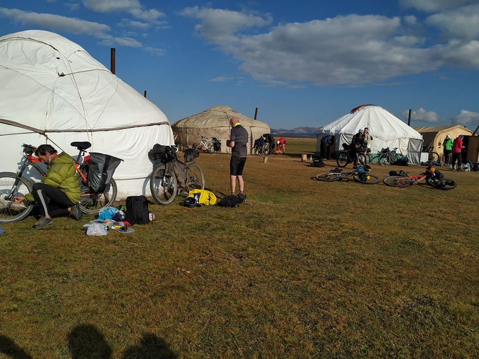 J7 : Tuura Suu – Bel Tam : Après le petit déjeuner, nous quittons le camp pour nous rapprocher des montagnes, où un chasseur vit avec un aigle royal (berkutchi en kirghize). Il nous montre une imitation de la chasse avec un aigle. Ensuite, nous faisons du vélo jusqu'à un autre camp de yourtes Bel Tam, situé au bord du lac Issyk Kul à 1600m d’altitude. Détente et baignade dans le lac. Nuit dans une yourte.